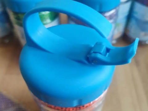 Контейнер в комплекті; висота 15, діаметр 6,5см; кришка на різьбі, з карабінною застібкою.