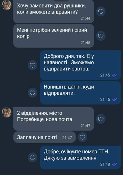 Ми надсилаємо Ваше замовлення "Новою поштою". Ви оплачуєте товар при отриманні.